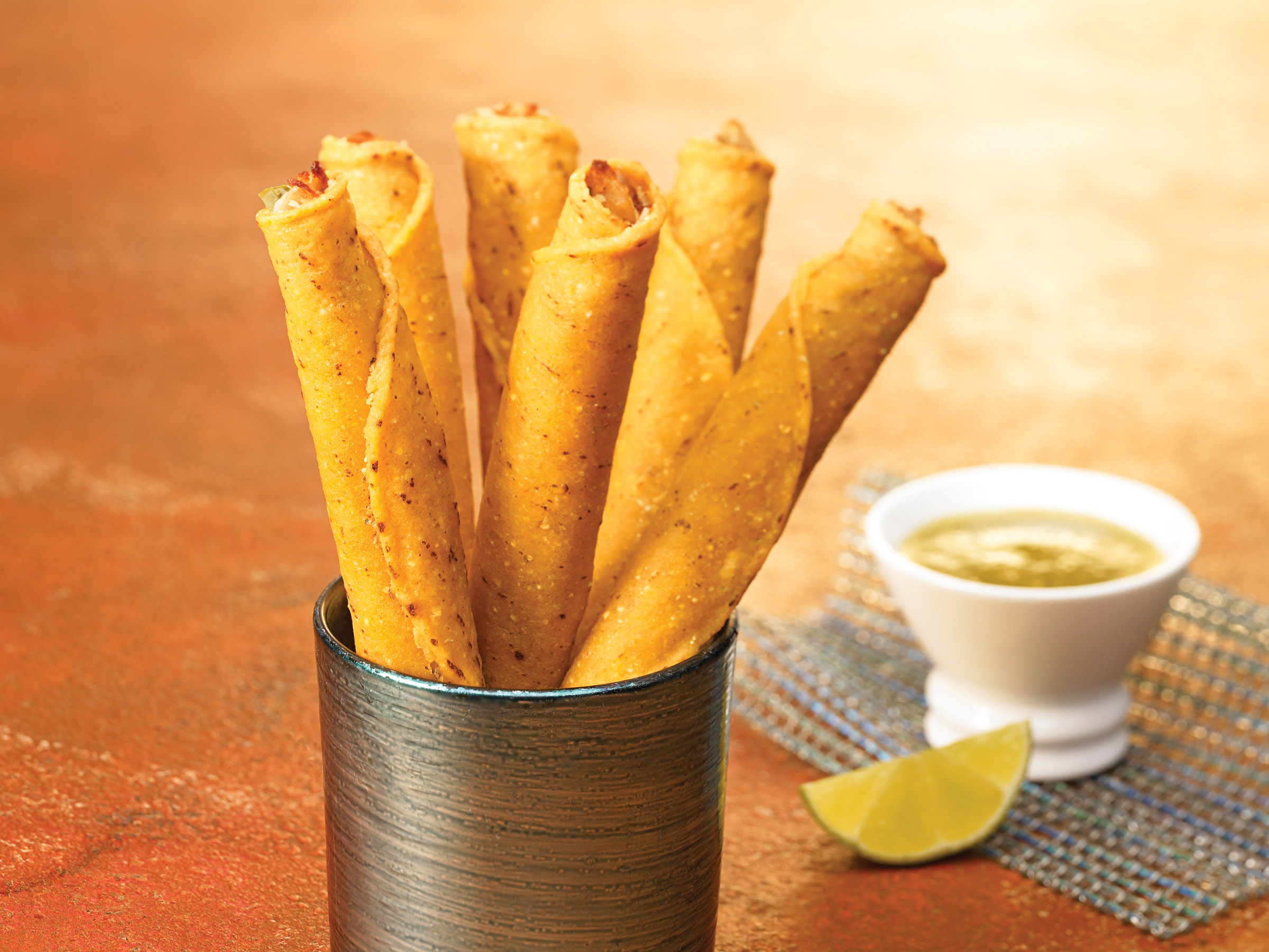 Ready to eat. In-house seasoned & cooked meats for an authentic Mexican flavor. Crunchy stone-ground corn masa tortilla, fried to a golden brown color for a scratch-quality appearance. Fully cooked for heat & serve convenience and speed of service. Convenient handheld – great for takeout and Grab’n Go! Reduce labor costs without any of the scratch preparation.