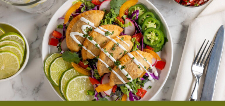 Chipotle Chicken Mini Empanadas are served with a zesty garlic and lime crema. Yield: 3 servings
